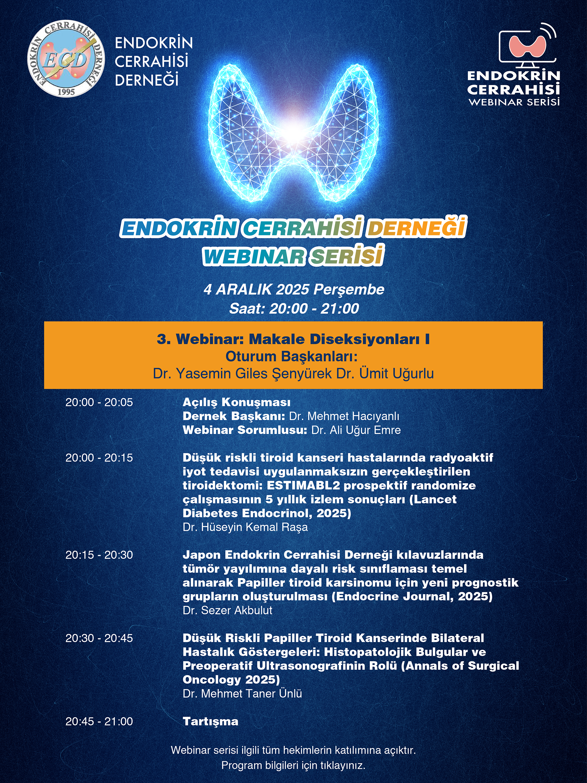 Çevrimiçi olarak gerçekleştirilecek olan bu toplantı tiroid kanseri ile ilgilenen tüm hekimlerimizin katılımına açıktır.